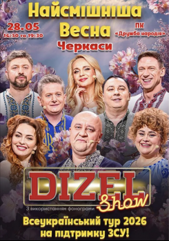 «ДИЗЕЛЬ ШОУ» 28 травня 2026, 16:30 Черкаси, ПК «Дружба народів» ВАРТІСТЬ квитка 300 - 950 грн КУПИТИ квиток