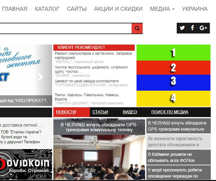 Для экономных предпринимателей и тех, кто любит считать в первую очередь свои деньги, компания "Довідкове бюро" предлагает разместить небольшой по площади, но яркий баннер на Главной странице сайта www.ck.dovidkove.com с переадресацией либо на сайт Заказчика, либо на его персональную страницу на нашем сайте.
