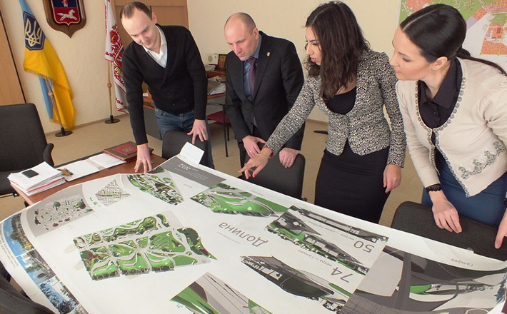 Днями Анатолій Бондаренко зустрівся з представниками Східноєвропейського університету економіки та менеджменту, які презентували ескізні проекти для облаштування кількох улюблених місць відпочинку жителів та гостей нашого міста. Зокрема, мова йшла про сквер «Юність».