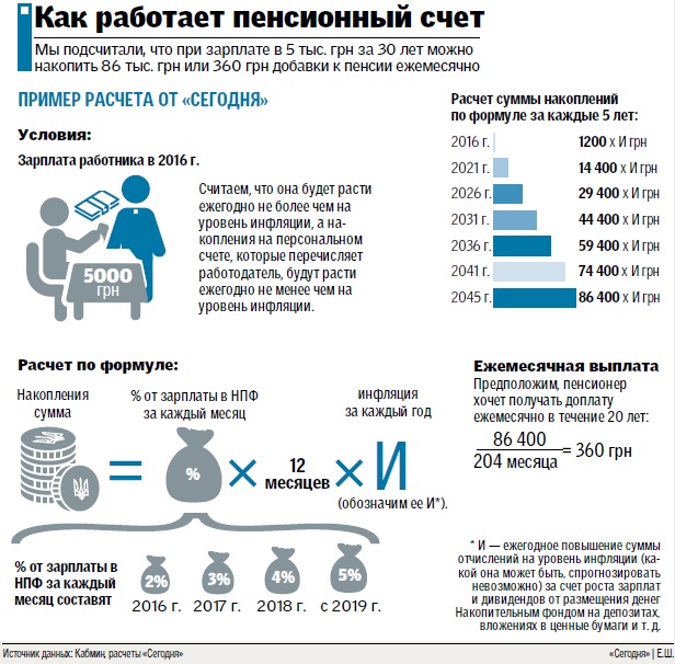 Головне нововведення в плані Кабміну – введення вже з 2016 р особистих накопичувальних пенсійних рахунків! Планується, що відкладати гроші почнуть все, кому не виповнилося 35 років, щоб людина встигла до старості накопичити відчутну суму. Законопроект про це переданий в Раду, але поки не внесений до порядку денного. Суть документа в тому, що з 2016 р роботодавець буде додатково до єдиного соцвнеску в 22% на заробіток працівника відраховувати ще 2% заробітку, на наступний рік – 3%, потім 4%, а з 2019 року – 5% на спецрахунок. Передбачено захист внесків від інфляції (як працює ця схема – см. інфографіку). При виході на пенсію людина отримає надбавку до неї, причому у нього буде вибір: забрати все відразу або отримувати довічно рівними частинами. Поки депутати проти збільшення податкового тягаря на бізнес. «Ми тільки зменшили соцвнесок, щоб вивести зарплати з тіні, а тепер знову хочемо збільшити, бізнес не зрозуміє», – говорить глава Податкового комітету ВР Ніна Южаніна. А президент Украналітцентра Олександр Охріменко каже, що інших грошей немає, а значить, введення відкладуть. Він підрахував, що навіть якщо система запрацює, надбавка за купівельною спроможністю виявиться невеликою.
