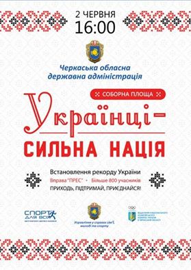 Завтра, 2 червня, на Соборній площі в рамках спортивно-масового заходу "Українці – сильна нація" будуть встановлювати рекорд України по виконанню вправи "Прес лежачи".