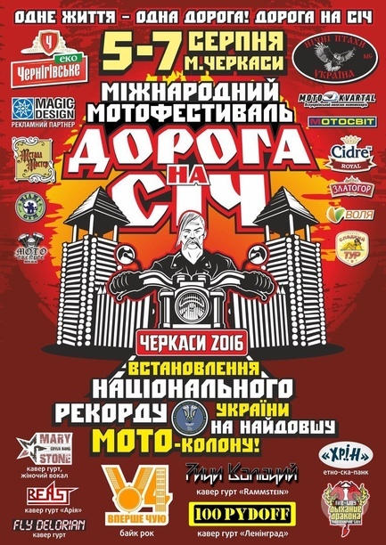 З 5 по 7 серпня на базі табору "Дахнівська Січ", що у мікрорайоні Дахнівка, відбудеться міжнародний мотофестиваль "Дорога на Січ". У рамках фесту заплановане встановлення Національного Рекорду України на найдовшу мото-колону. Окрім того, на відвідувачів чекають виступи популярних музичних гуртів ("Mary Stone", "100 PydOff", "Річі колючий", "Хрін" та ін.), Fire-шоу, показові виступи майстрів "бойового гопака", шоу каскадерів, бармен-шоу, дискотеки, пляжні розваги та багато іншого. Вартість квитка – 300 грн для чоловіків, 150 грн для жінок та безкоштовно для дівчат, які приїхали за кермом байка.