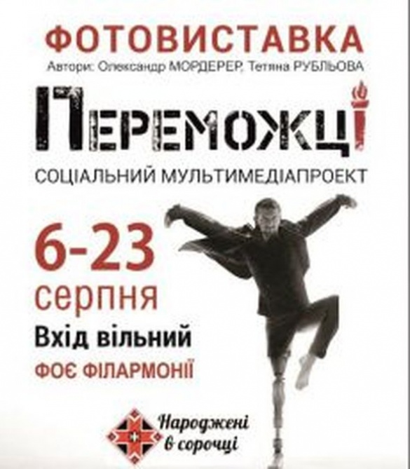 6 серпня у фойє обласної філармонії відкриється фотовиставка "Переможці". Тут презентують світлини бійців АТО, які під час воєнних дій на сході країни втратили кінцівки та використовують протези, але не втратили найголовнішого – волі до життя. Кожна світлина розповідає свою унікальну історію. Окрім українців, виставку вже бачили в США, Канаді та Брюсселі. Вхід на захід вільний. Триватиме фотовиставка до 23 серпня.