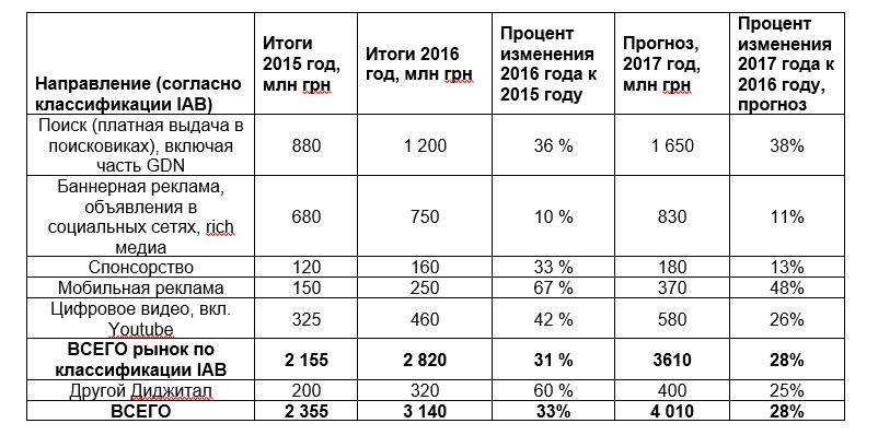 Основными драйверами роста в 2016 году был мобайл, поиск, цифровое видео, также существенно вырос другой диджитал.