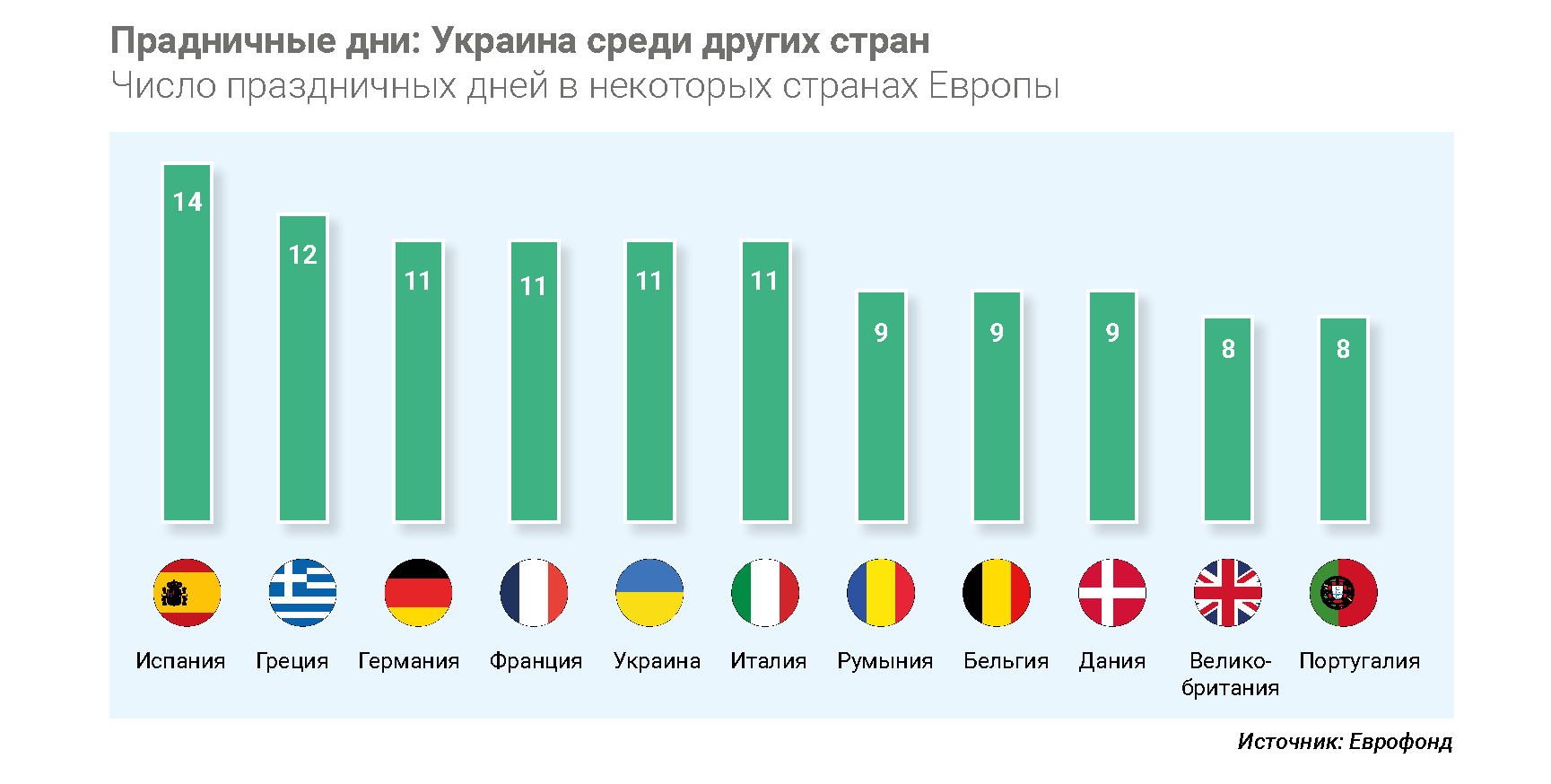 Несмотря на популярное мнение о том, что праздников в Украине слишком много, наша страна вовсе не возглавляет рейтинг стран с наибольшим количеством выходных