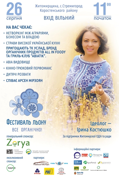3-й Фестиваль Льону – кіннотрюковий перфоманс, авіашоу та ярмарок “Органічна їжа” цього року проходитиме у селі Стремигород Коростенського району Житомирської області та стане потужним джерелом натхнення і гарного настрою для гостей, а також – стартовим майданчиком для нових творчих ідей у галузі льонарства та органічного виробництва.