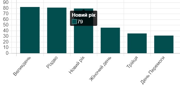 Найважливішими для українців, згідно з цим дослідженням, є Великдень - 82%, Різдво - 81%, Новий рік - 79%, Жіночий день - 45%.