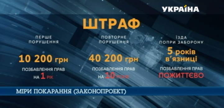 Мінімальний штраф складе 10 тисяч гривень, з позбавленням права їзди на рік. Якщо ж протягом п’яти років випадок повториться, стягнення становитиме вже 40 тисяч гривень, а права заберуть на 10 років.