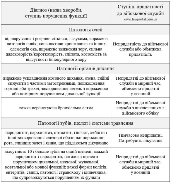 Кроме того, можно получить отсрочку или освобождение от армии по состоянию здоровья. Как правило, полное освобождение от всеобщей воинской повинности имеют молодые люди с явными тяжелыми патологиями, например, отсутствие конечностей, слепота, глухота, умственная отсталость, шизофрения и тому подобное. В большинстве других случаев речь идет не о списании призывника из-за непригодности к службе, а о необходимости в лечении, на основании которого дается временная отсрочка (на полгода или один год) и затем проводится повторная медкомиссия.