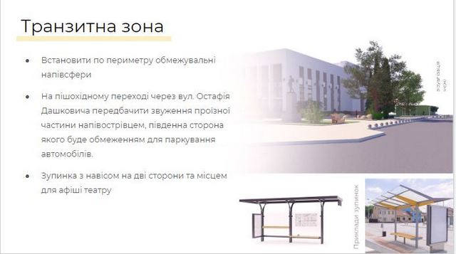 – Зонування єдиного простору дуже складне, воно умовне, – сказав пан Ляшов. – У даному випадку, я наголошу, це не сквер і не парк, це Театральна площа, яка має трохи інше функціональне призначення. Це складова зовнішнього вигляду театру. Тому, наприклад, розміщення на ній, як пропонувалося, дитячого майданчика ми не вбачаємо доцільним. Сама будівля відповідає певним параметрам і стилю, тому і навколо має відчуватися певна величність! Ці питання дискусійні, ми будемо їх обговорювати. Більше того, ми готові ще раз цей проєкт благоустрою навколо театру виносити на містобудівну раду, — коментує Дмитро Ляшов.
