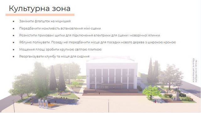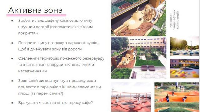 Зокрема, громадські активісти запропонували поділити площу на такі зони: транзитна, адміністративна, культурна, затишна, активна. І запропонували, що саме в кожній з них має міститися.