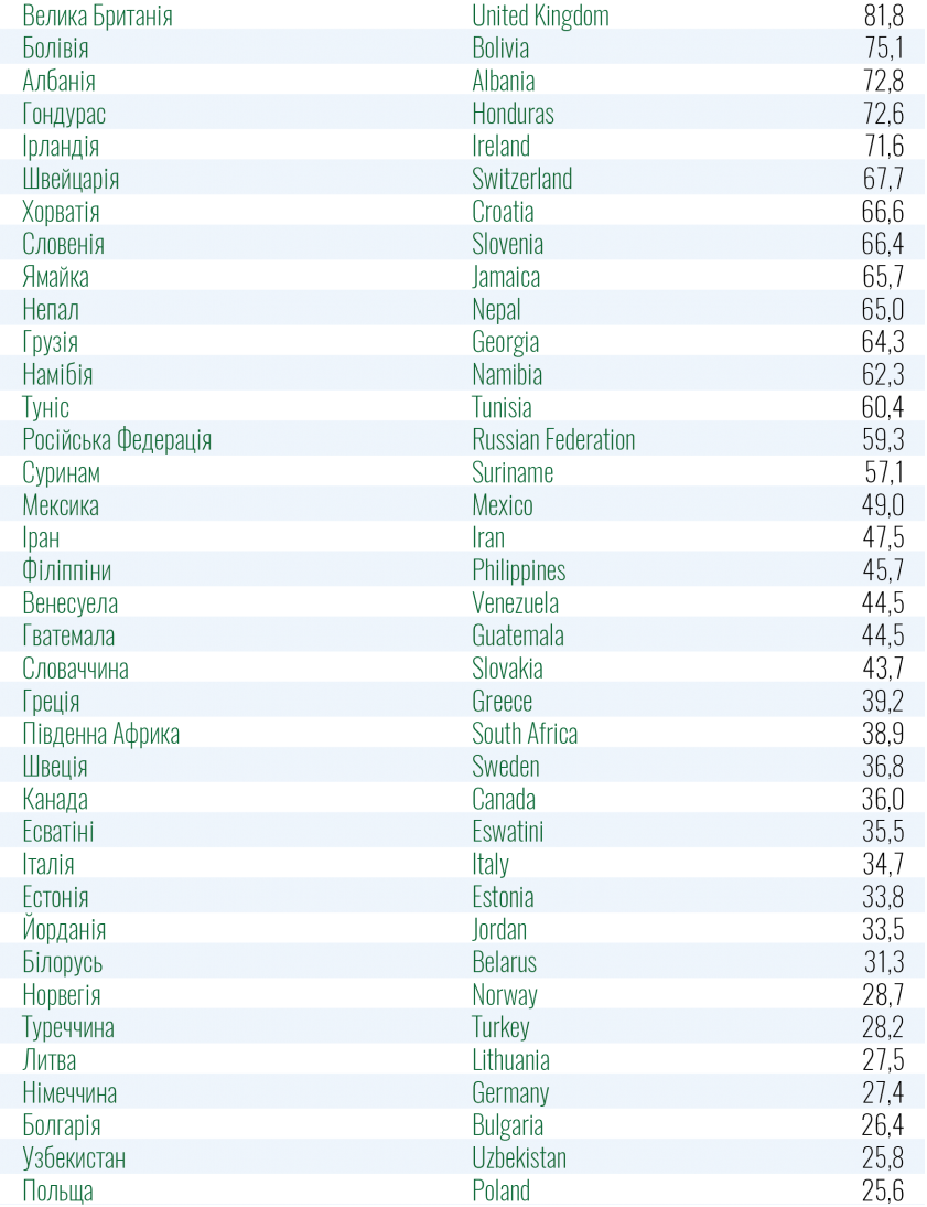 Так, до переліку "зеленої" зони входять понад 140 країн, зокрема: Велика Британія, Росія, Білорусь, Італія та Єгипет.